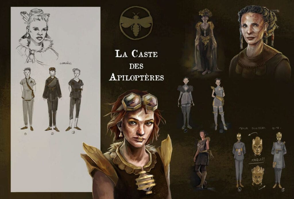 Nous avons cherché à imaginer pourquoi et comment les insectes auraient pu devenir géants. Scientifiquement parlant, et même si les archéologues ont découvert des fossiles de libellules géantes (70 cm) datant de la période du Carbonifère, la science a démontré l’impossibilité biologique de leur croissance liée à leur système respiratoire dépendant du taux d’oxygène dans l’air. Mais le privilège de l’écriture, c’est de pouvoir s’affranchir des règles pour rêver d’autres possibles. Alors ensemble, arthropode après arthropode, nous avons imaginé comment les survivants humains d’une immense pandémie auraient pu tirer parti des capacités phénoménales de nos amis les insectes et c’est ainsi que naquit notre Cité de Kell !