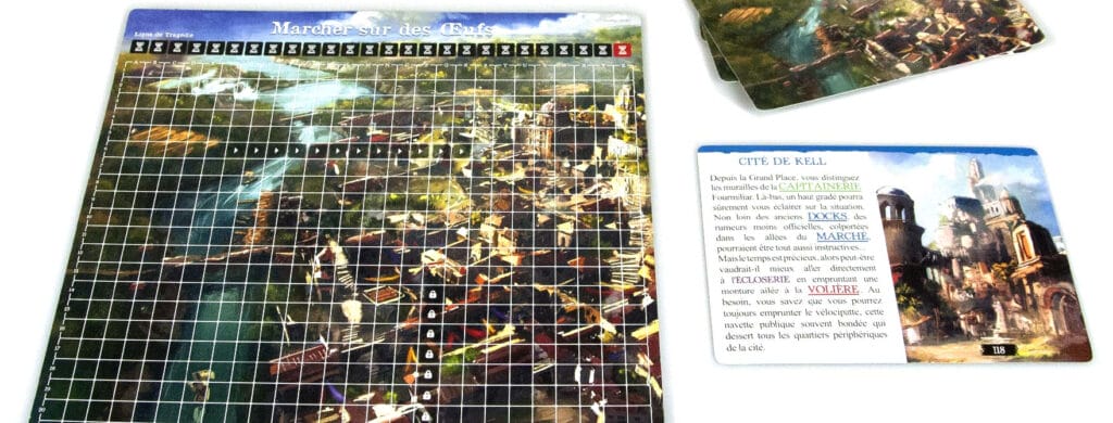 Je partage assez cet avis. L’univers proposé est riche, innovant, intriguant et donne envie se plonger à fond dedans, mais il est dur de se raccrocher à l’histoire au fil des différentes grilles, et je dois souvent relire des cartes pour réussir à rester sur l’intrigue.