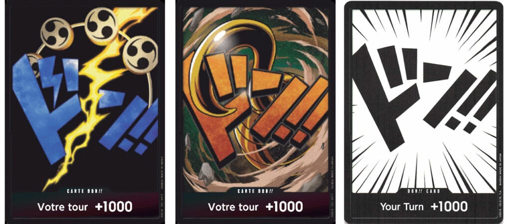 À noter que j’ai particulièrement aimé découvrir les cartes des séries « The Best », qui en plus d’y découvrir des cartes très intéressantes qui complètent bien les collections, et pas mal de brillantes, on y trouve systématiquement une carte Don originale, typée selon l’un des très nombreux personnages du manga. Cela permet de personnaliser son deck avec des cartes Don plus sexy que les cartes blanches beaucoup trop sobres du jeu de base.