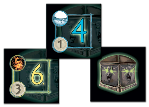 - L’arena : c’est l’endroit où l’on peut venir défier les autres joueurs en duel ! Quand on perd, le disciple s’affaiblit (on tourne son dé pour l’abaisser de 1). Le vainqueur décide, soit de placer un jeton de sa réserve personnelle sur un emplacement à la krypt (ceci peut entraîner la fin de partie !) et recevoir 8 points, soit de ne pas placer de jeton et recevoir 4 points.