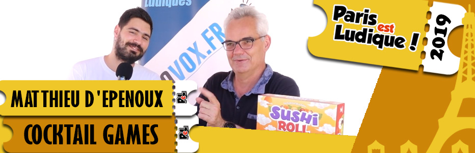 Ludovox est à Paris pour couvrir l’édition 2019 de Paris Est Ludique, et nous voilà avec Matthieu de Cocktail Games qui nous parle des futures sorties, Sushi Roll et Hanabi, de ses best sellers et de sa vision du marché.