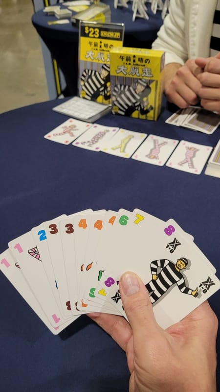Saachi & Saachi, l’éditeur japonais, était présent pour la toute première fois sur le salon de PAX. L’information circulait sur les réseaux. Une belle occasion d’essayer leur dernier jeu de combinaisons au thème improbable d’évasion de prisonniers. Mécaniquement, il n’est pas sans rappeler Scout ou Odin.