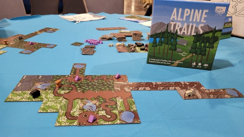 J’avais repéré ce jeu zen par curiosité. Le thème parle à ma fibre de randonneur. Le jeu est en lui-même un casse-tête très solo. Chacun place ses tuiles dans son coin pour former le plus lucratif en points des parcs nationaux. Le résultat offre un visuel léché pour jeu autoédité. C’est beau.
