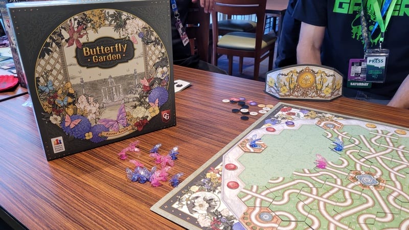 La maison Capstone Games présentait cette année une réédition de l’excellent et vénérable Indigo de Reiner Knizia (2012). En coédition avec Korea Board Games, cette édition est tout simplement parfaite. Le thème des papillons et du zen offre un design particulièrement beau et lisible (illustrations Saleign Yoon).