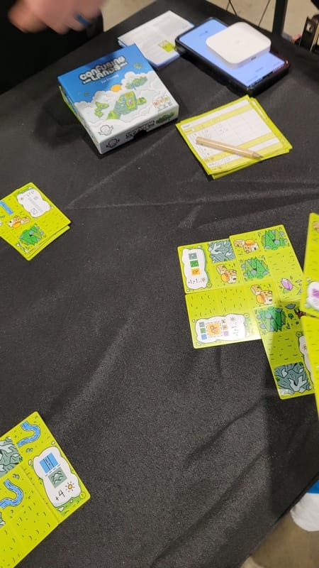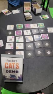 Bien sûr, l’accent était mis sur les jeux rapides et familiaux que l’on peut tester sur le pouce, mais pas seulement. La section Démo permettait aux exposants d’avoir une ou plusieurs tables dédiées à un jeu, à part de leur stand.