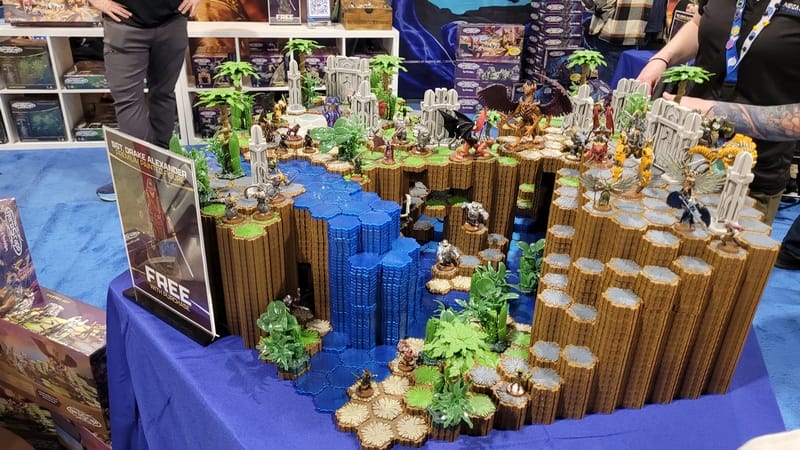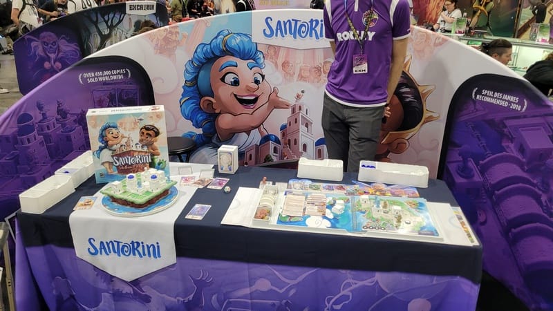 Roxley Games était là en force et même si nous n’avons pas pu jouer Excalibur sa prochaine sortie, nous avons découvert la super-deluxe nouvelle version qui s’en vient, Santorini Pantheon. Le plateau est plus gros, et encore plus beau. Les pièces aussi bien sûr. Le jeu propose tous les pouvoirs déjà sortis.