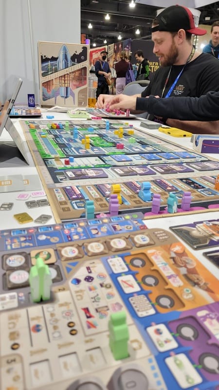 La convention se déroule juste après Essen et une section à part du salon, le « First Look » lui est dédiée avec toutes les dernières sorties disponibles en libre accès, avec ou sans explication. De Duck and Cover à Galactic Cruise, le tout dans une salle à part d’une centaine de tables. Cette section a énormément augmenté en surface, bravo !