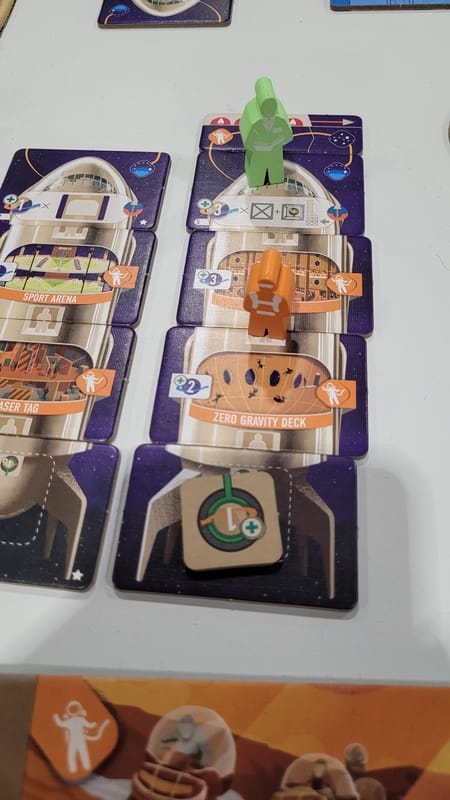 Les actions possibles incluent l’acquisition de plans, la construction de vaisseaux, attirer des invités et la création de développements, qui établissent des connexions entre les lieux et élargissent les choix d’actions disponibles au fil de la partie. Vous influencerez les marchés de ressources, dont les fluctuations dépendent des actions de tous les joueurs.