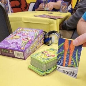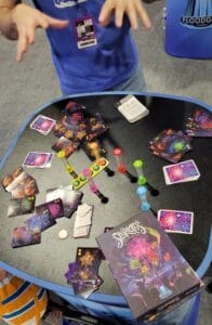 Le salon proposait aussi une ludothèque à disposition, une alternative lorsqu’il y a beaucoup de monde. Nous y avons découvert ce jeu de combo de 2020 sur une tablette. Un jeu de cartes à pouvoir avec des super-pouvoirs et un look dessin animé qui vous propose des combats en arène pour 2 à 4 joueurs.