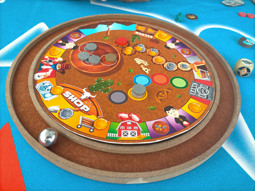 Le poussée de bille dans le cercle extérieur ne se maîtrise pas tout de suite, ça reste quand même plus abordable que l’adresse requise par un Crokinole. Les parties sont rapides côté fléchette, un peu plus longues côté Far West, mais quelle belle idée que ce double Circles ! Et maintenant que je vois le nom de l’auteur, ça ne m’étonne pas que l’idée soit brillante, on ne crée pas The Crew et The key par hasard, Mr Thomas Sing !