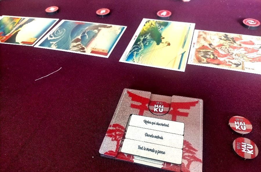Est-ce que vous êtes extrêmement surpris si je vous annonce que dans ce jeu vous allez composer des haïkus ? Pas facile l’art du haïku, forme poétique composée de trois vers évoquant l’évanescence des choses et les sensations suscitées.