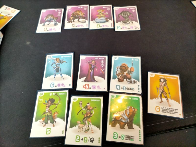 J’ai pu jouer à quatre joueurs, qui propose une variante qui semblera vite être la meilleure façon de jouer : on joue en équipe, partageant un tour sur deux une carte avec notre adversaire, un tour sur deux avec notre coéquipier.