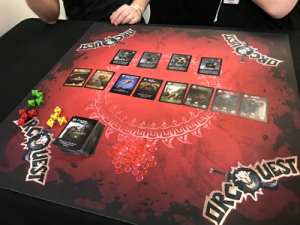 OrcQuest est un petit jeu de cartes léger et un peu fourbasse signé Maze games (actuellement sur KS encore pour quelques heures), où l’on incarne des orcs aventuriers prêts à dégommer. Donc là, on joue des cartes tour à tour en essayant de résoudre des challenges (enchanteurs et elfes à bastonner) avec un feeling rétro bien assumé avec des références à Hero Quest. D’ailleurs, dans la vidéo à venir, une révélation sera faite !