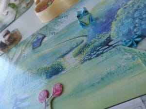 Pergola est un moment ludique apaisant. Un moment de douceur et de quiétude. Les illustrations de Karolina Kijak-Dzikonska, que nous avions déjà rencontrées sur Meadow , permettent une immersion parfaite dans cette atmosphère calme et apaisante. Quel plaisir de placer nos éléments floraux comme on le souhaite sur notre plateau, avec l’unique volonté de faire quelque chose d’harmonieux. N’est-ce pas adorable de mettre cette petite abeille dans le ciel ? En pleine période de débat sur une loi visant à exterminer ces adorables butineuses, cela donnerait presque l’impression d’entendre leur bourdonnement.