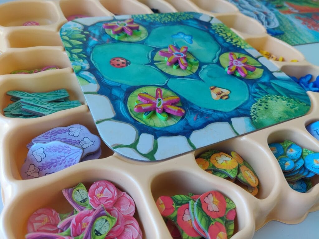 Assurément, tout est fait pour que l’immersion dans le thème soit au rendez-vous. Et c’est peut-être ici un des aspects le plus immersif du jeu : la liberté qui nous est laissé de positionner à notre guise nos fleurs et insectes sur notre plateau joueur.