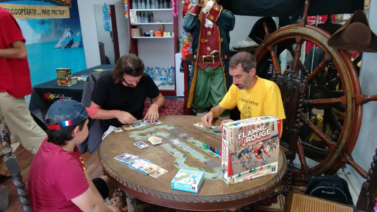 Tour du propriétaire fort complet : ma femme et moi (plutôt joueurs vétérans) y avons passé une formidable semaine, 32 jeux testés en 6 jours & soirées (jeux plutôt format moyen 1h-1h30), principalement entre le village du Drapeau et le village Reel : il y a de quoi faire. Nos enfants (12,14,19) nous accompagnaient ou jouaient ailleurs, entre 2 bouteilles d’eau (il faisait très chaud !).