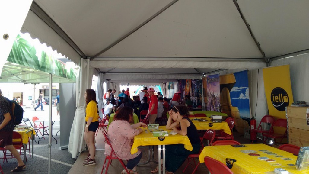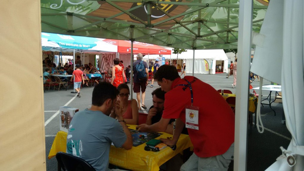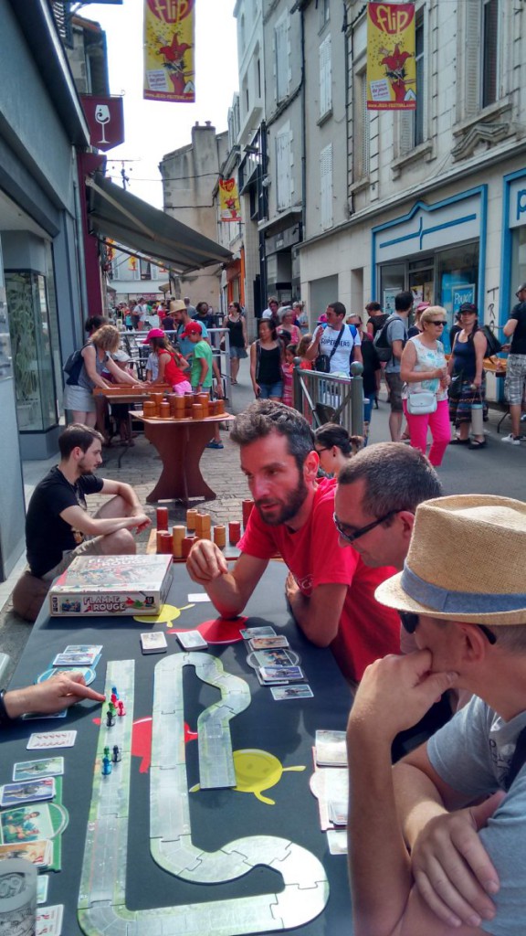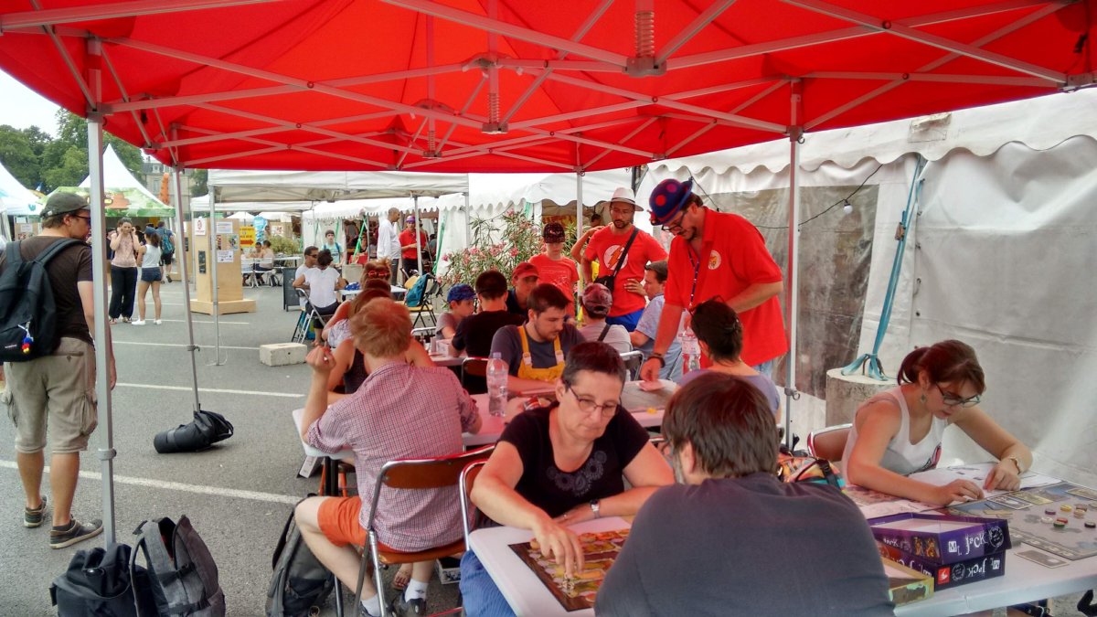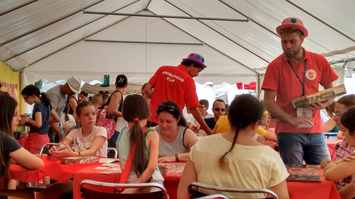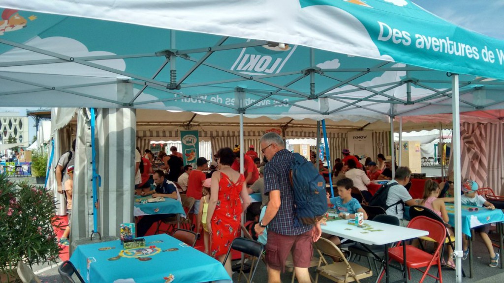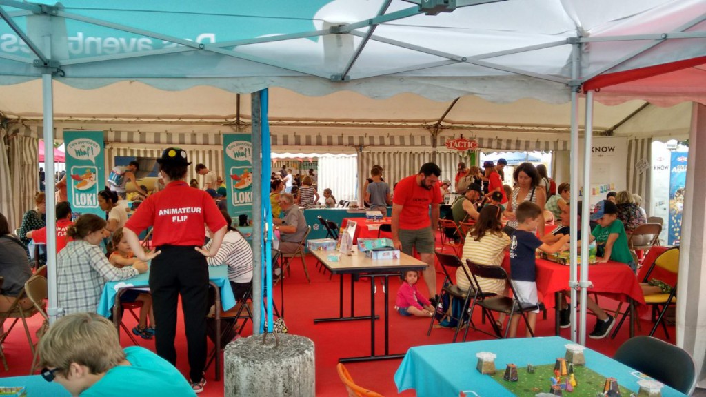 L’organe directeur du FLIP, c’est la Place du Drapeau. On retrouve notamment, dans ce spacieux « Village des Jeux de société » en plein air, les stands dédiés à des éditeurs. Clé en main avec animateurs du FLIP pour certains, ou auto-animés pour d’autres, différentes déclinaisons existent. Pour le visiteur, cela fait peu de différence, tant on est bien reçu partout.