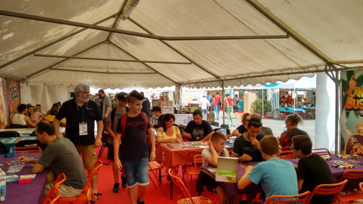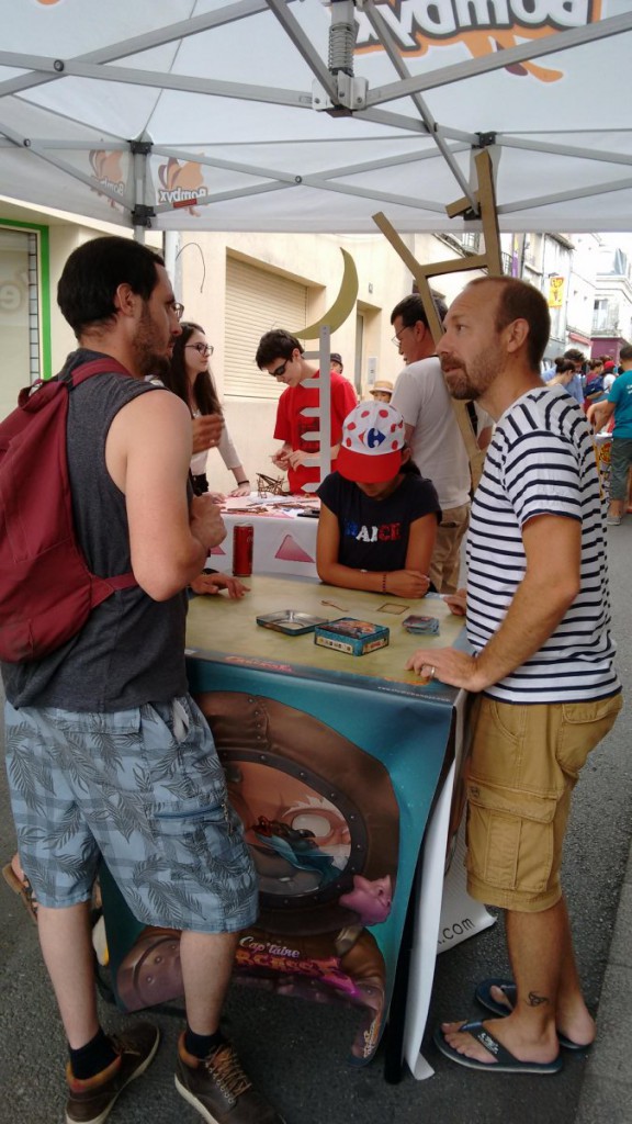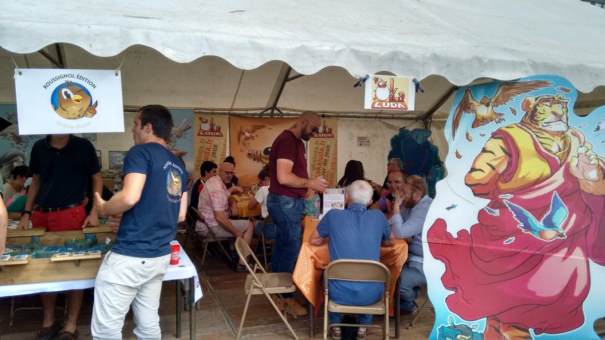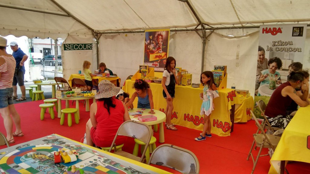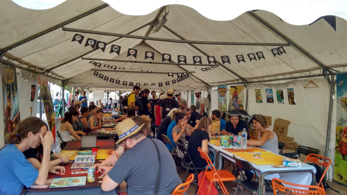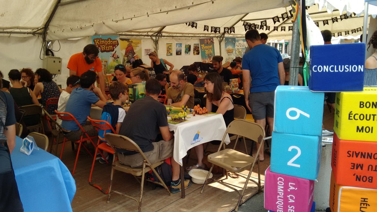 L’organe directeur du FLIP, c’est la Place du Drapeau. On retrouve notamment, dans ce spacieux « Village des Jeux de société » en plein air, les stands dédiés à des éditeurs. Clé en main avec animateurs du FLIP pour certains, ou auto-animés pour d’autres, différentes déclinaisons existent. Pour le visiteur, cela fait peu de différence, tant on est bien reçu partout.