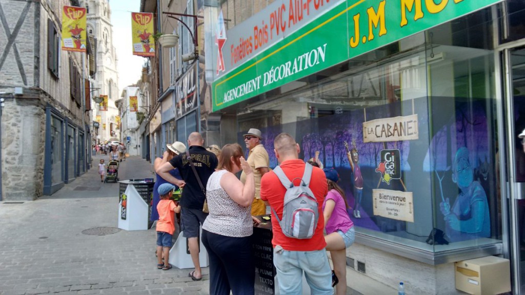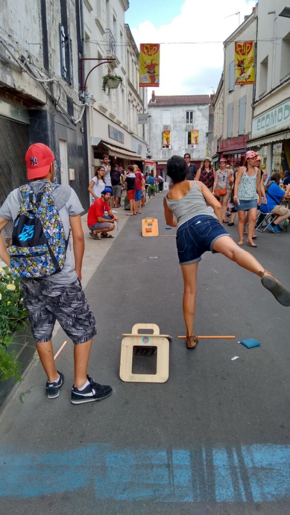 Le FLIP se passe aussi dans les rues, qu’il faut – la vie est bien faite – emprunter pour aller d’un lieu à l’autre. Des intermèdes ludiques inopinés sont à prévoir, et il n’est pas rare de mettre beaucoup plus de temps que prévu à rallier sa destination. Butiner au gré des occasions croisées en chemin, se laisser surprendre par un jeu vers lequel on ne serait pas forcément allé en temps normal est une des façons de vivre le festival.