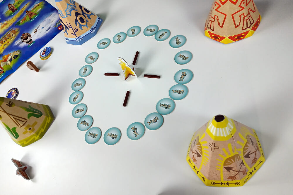Il est à noter néanmoins que le jeu propose des variantes pour complexifier un peu tout ça. La troisième pourrait me titiller, car dans celle-là, au bout d’un moment, on ne soulèvera plus les tipis pour rafraîchir la mémoire, et on ne saura qu’à la fin si on a gagné ou non. Malheureusement Tutur n’a pas voulu y revenir.