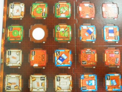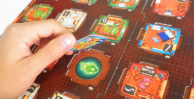 L’installation est simple. On choisit les équipes, puis, à tour de rôles, fantômes et chasseurs posent une tuile représentant une salle de l’hôtel, plus ou moins meublée selon sa valeur. Puis les fantômes placent secrètement leurs pions sous des salles et ne bougeront plus de ces emplacements jusqu’à la fin de la partie. (Si l’on ne se souvient pas parce qu’on n’a pas de mémoire, des coordonnées alphanumériques sont là pour nous aider : A1, B2, etc.).