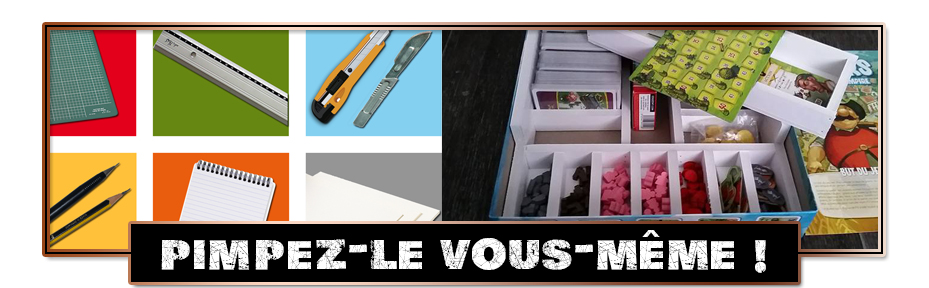 Très interessant et bien expliqué. Merci pour cet article, et j’attends les autres avec impatience. Mais pourquoi, ici et ailleurs, vouloir absolument « pimper » une boîte de jeu, alors que l’on pourrait se contenter de l’enjoliver ou de l’embellir, voire juste de l’agrémenter ou de l’améliorer ?