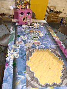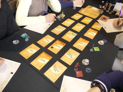 Je n’ai malheureusement pas eu le temps d’y jouer. A contrario, mon amie blogueuse Tartenpionne a goûté au prototype avec Antoine en animateur de luxe et je vous invite donc à lire la présentation de sa partie découverte sur son blog.