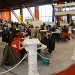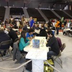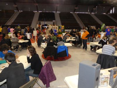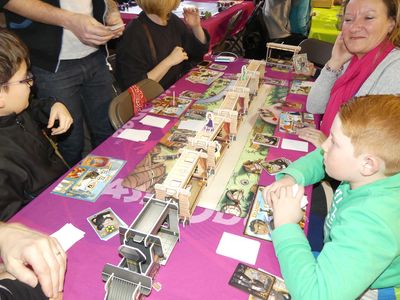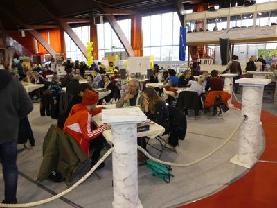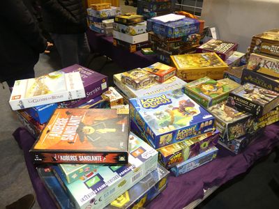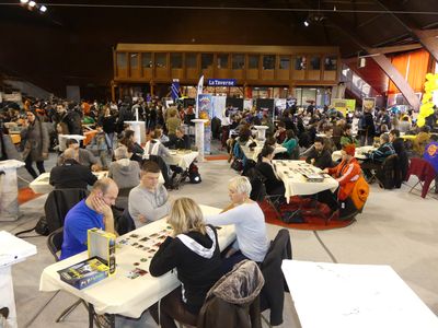 Preuve que l’engouement pour les jeux se répand dans notre société en touchant un public de plus en plus large, la soirée de Jeux En Société du mardi soir a fait carton plein avec plus de 60 joueurs. Les organisateurs ont du même refuser du monde pour cause de manque de chaises : une première. Je crois savoir que certains visiteurs ont connu la même mésaventure avec le blocage des entrées à la Halle pendant les fortes périodes d’affluence les après-midis afin d’éviter sa saturation. Le lieu serait-il devenu trop petit avec le succès grandissant ?