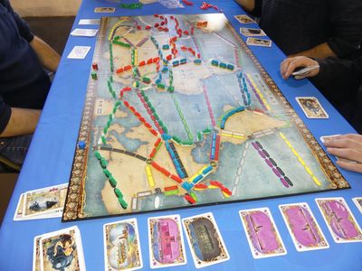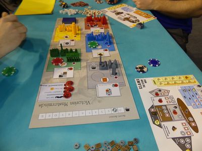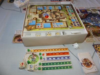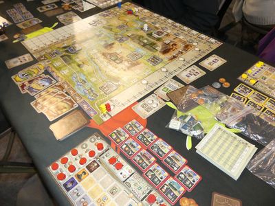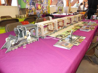 Gigamic a connu quelques soucis pour apporter un Great Western en VF et c’est donc sur la VO qu’elle proposait d’essayer le jeu le dimanche, un exemplaire dégoté grâce à une âme charitable locale.
