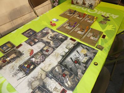 Toujours chez les Space Cowboys, le jeu de type résolution d’énigmes à plusieurs est depuis sorti et faisait de la concurrence aux vrais « escape room » dont plusieurs étaient proposés sur place à la Halle.