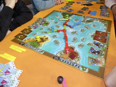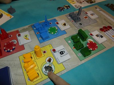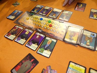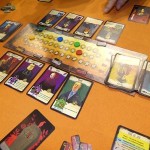 Pas facile de déterminer la cible et chacun expose ses arguments pour ne pas être attaqué, donnant lieu à d’amusantes discussions… le mieux est semble t-il de cibler un adversaire avec lequel on est en concurrence au niveau des cartes pour l’attribution de majorités.