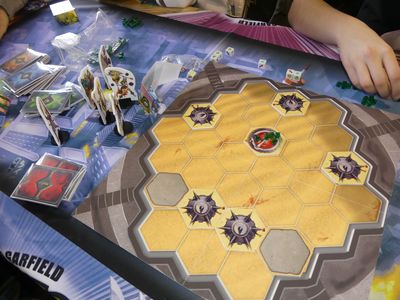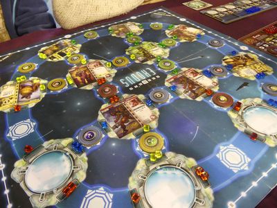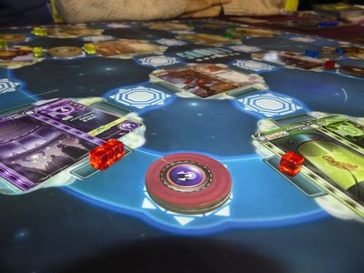 Arrêtons nous un peu plus sur ce dernier car j’ai eu la chance de le découvrir avec les explications de Didier (de Sweet November) et une demie-partie à 4 : l’après-midi a défilé à une vitesse folle dans ce voyage intergalactique tant le jeu est prenant.