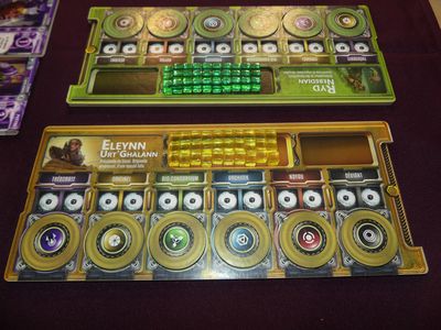 Le principe des dés amovibles améliorant ses capacités est conservé, tout comme l’utilisation astucieuse du couvercle de la boîte en présentoir de ressources.