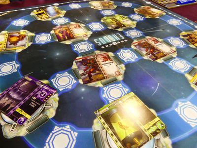 Les cartes sont à la fois un module / un équipage et des ressources (gemmes) de valeur différente selon la carte pour payer l’acquisition d’autres cartes, à savoir la construction de module ou le recrutement d’équipages.