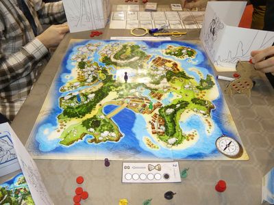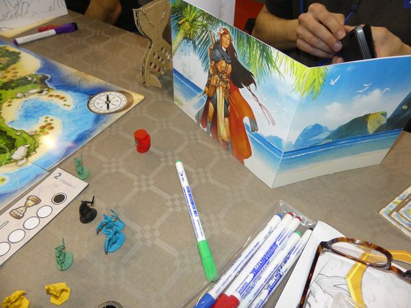L’île au Trésor est un jeu d’aventures / exploration avec un prisonnier et des pirates pour 2 à 6 joueurs, présenté en version prototype par son auteur Marc Paquien (co-auteur de Yamatai) sur le stand de Matagot.