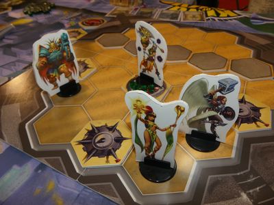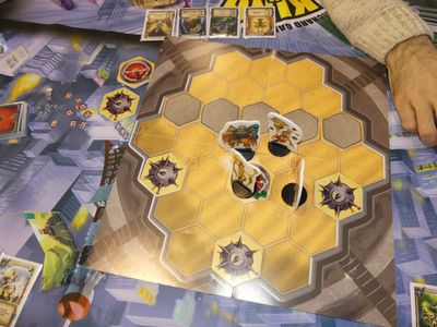 Les combats se déroulent dans une arène symbolisée part des hexagones pouvant accueillir qu’un seul héros.