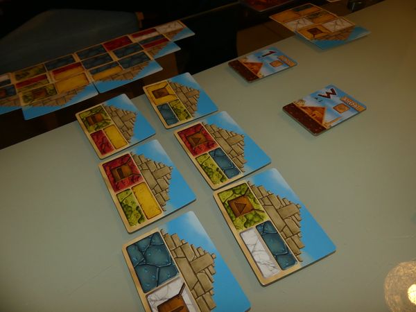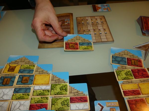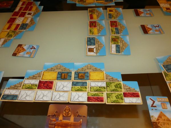 Le principe d’acquisition des cartes est proche de celui de Kingdomino, les deux jeux boxent d’ailleurs dans la même catégorie avec tout de même plus de profondeur pour Pyramids.