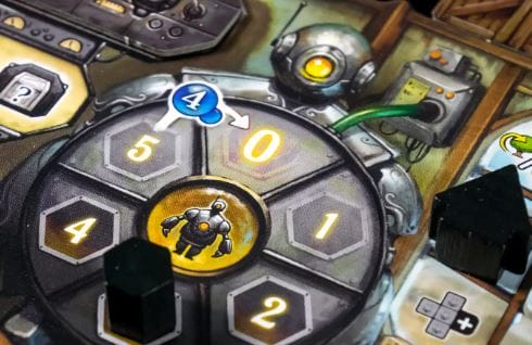 La pose des outils sur les tuiles action est une mécanique adaptée de la pose d’ouvriers bloquant une action, en plus souple. Ici, ce n’est pas l’outil qui va bloquer une action, mais sa couleur (ou son type). Les autres joueurs ne pourront activer une tuile avec un de leurs outils que si la couleur de l’outil n’est pas présente autour de la tuile action. C’est peut-être là où l’interaction sera la plus forte dans le jeu, car il faudra s’adapter aux outils déjà présents. D’autant que le dernier outil restant de chaque joueur détermine le bonus assistant de fin de manche.