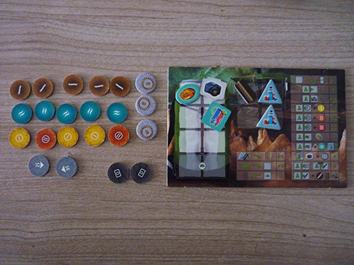 Le jeu, malgré le hasard des sorties des tuiles, est en fait très calculatoire, et on tente de faire au mieux afin de ne pas gaspiller nos précieux points d’action. Sachant que chaque déplacement coûte 1 point de base (majoré par la difficulté d’accès : pose d’une corde ou passage étroit) et que remplir son sac au camp nécessite 2 points, on cherche à prévoir au mieux ses prochaines explorations (la pose d’une nouvelle tuile coûte également 1 point ! ) .