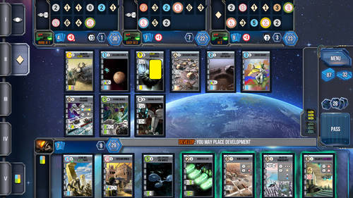 La grosse nouvelle de votre « what’s app » mensuel, c’est certainement l’arrivée prochaine de Race for the Galaxy sur iOS et Android chez Temple Gates Games ! De prime abord ça sent très bon. Regardez moi ce screenshot de la mort qui tue (et oui il y a encore des irréductibles qui utilisent cette expression en 2017) :