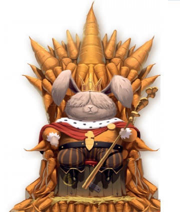 Le Roi Lapinot était avide de carottes d’or, et malheureusement, les terres du Royaume n’étaient pas en mesure d’en produire suffisamment afin d’étancher sa soif. C’est pourquoi, le jour où les éclaireurs furent de retour dans la salle du trône avec d’heureuses nouvelles des frontières extérieures, le Roi Lapinot renversa son cocktail d’un geste maladroit, avant de convoquer ses Seigneurs Lapin les plus valeureux. Chacun d’entre eux fut alors chargé de réunir ses hommes (enfin ses lapins) afin de partir installer de nouvelles colonies.