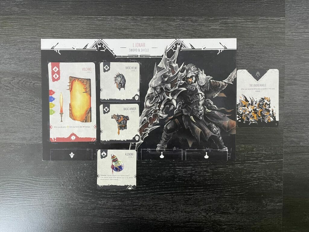 Si le principe de Primal est simple, occire des monstres, ses mécaniques n’en sont pas moins riches et travaillées. Chaque joueur, une fois son personnage choisi, va se voir doté d’un deck représentant à la fois ses options tactiques (attaquer, défendre…) mais aussi son endurance. Chaque carte jouée se paiera en défaussant d’autres cartes de sa main, et le deck épuisé symbolisera la fatigue du personnage en combat. Chacun choisira également une “compétence spéciale”, débloquée en réalisant certaines actions, ainsi que toute une panoplie d’armures et d’équipements.
