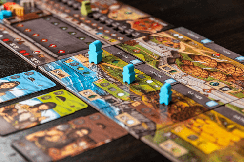 Au cours de la partie, vous allez donc gérer vos ressources (pas moins de 16 ressources différentes ici !), avancer sur les pistes de ravitaillement et de commerce, placer des ouvriers sur les tuiles d’action et jouer des cartes. Une fois que tout le monde a effectué trois tours, la manche se termine. Les joueurs et joueuses doivent alors effectuer les étapes de fin de tour, qui consistent principalement à nourrir leurs habitants et à produire un terril.
