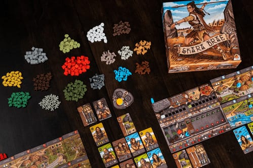Dans Skara Brae, l’exploitation des ressources entraîne une augmentation de l’espace de stockage et la production de déchets inutiles, à savoir une ressource qui occupe de l’espace et vaut des pénalités à la fin. Tout le jeu vous demandera donc d’équilibrer la production & la consommation de ressources.