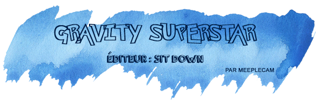 COMMENT : Sur un plateau composé d’un quadrillage et rempli d’étoiles de différentes couleurs, vous allez devoir utiliser votre main de 5 cartes pour déplacer votre petit avatar. S’il n’y a rien sous vos pieds, vous tombez jusqu’à la plateforme en-dessous, en capturant les pions étoilés sur votre parcours. Les actions possibles seront de déplacer votre personnage à gauche, à droite, de descendre d’une plateforme, de sauter sur une case à côté, et surtout de modifier le sens de votre personnage, qui se trouve irrémédiablement attiré vers le bas selon son orientation. On ne récupérera sa main de cartes que lorsqu’on les aura toutes jouées. Il faut donc bien observer le plateau pour voir comment récupérer le plus d’étoiles. D’autant que si on arrive à rentrer en collision avec un autre joueur, ce dernier est expulsé du plateau (il reviendra à son tour via un des portails sur le plateau) et vous pourrez lui voler une étoile. Comptage des points très simple : un point par étoile récupérée, plus un point par paire (de la même couleur) obtenue.