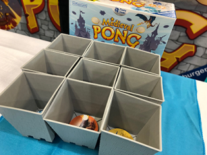QUOI : Medevial Pong est un party game de la gamme Funny game inspiré du bière-pong, à savoir un jeu à boire qui, le sachiez-tu, connait de véritables tournois (oui, le WSOBP aux Etats-Unis par exemple). Dans Medieval pong, point d’alcool (pas dans la boite en tout cas !), mais les balles de ping pong restent.