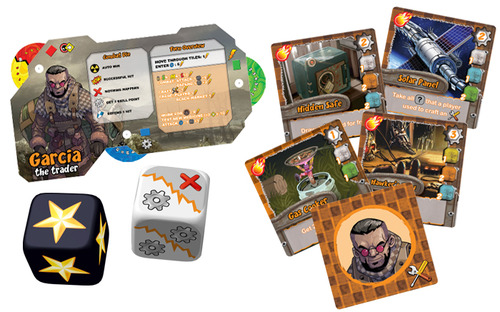 Garcia, le trader : il est spécialisé dans la négoce en récupérant les jetons utilisés dans la fabrication d’objet par un joueur, en dérober aussi (là c’est plus de la négoce mais du vol) ou peut piocher une carte incident gratuitement.