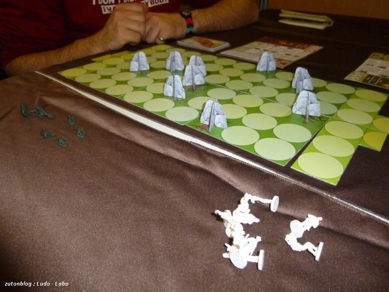 La première partie a vu les dinos l’emporter largement. Mais, nous avions un bug de règles, dû à des précisions manquantes.