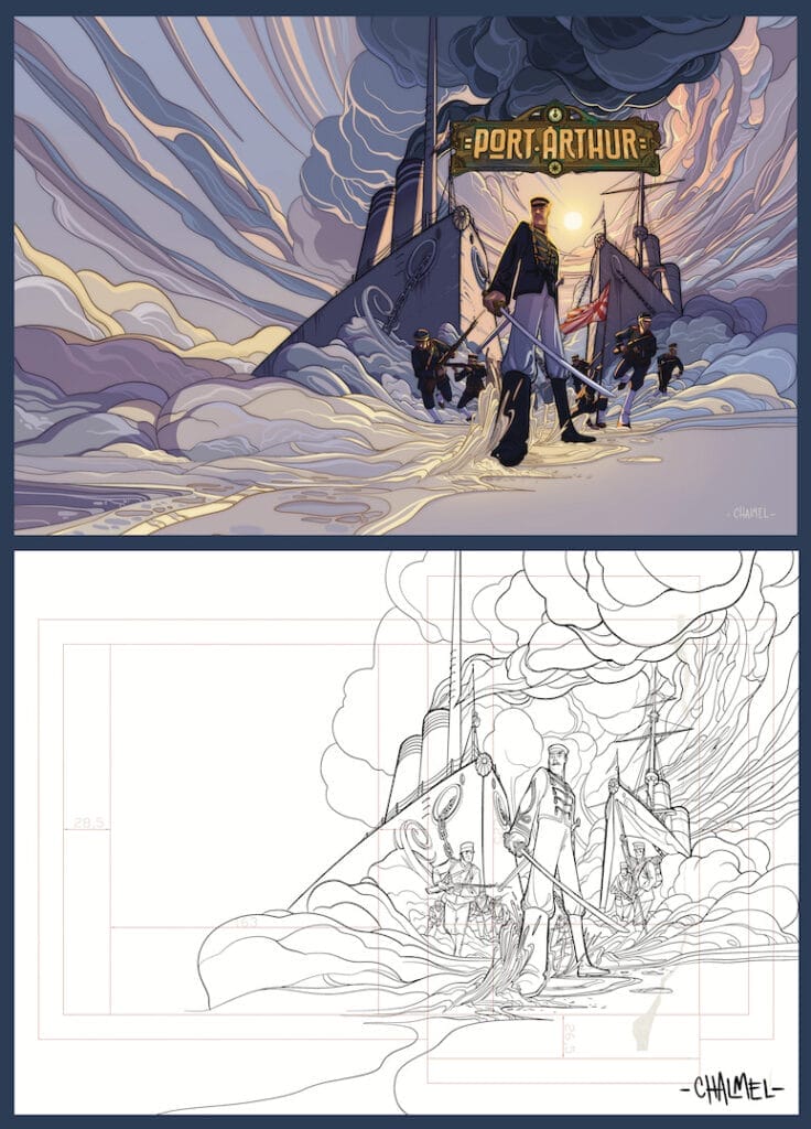 L’illustration de la couverture de Port Arthur, réalisée par Maud. Il s’agit d’un wargame de Yasushi Nakaguro publié par Nuts! Publishing.