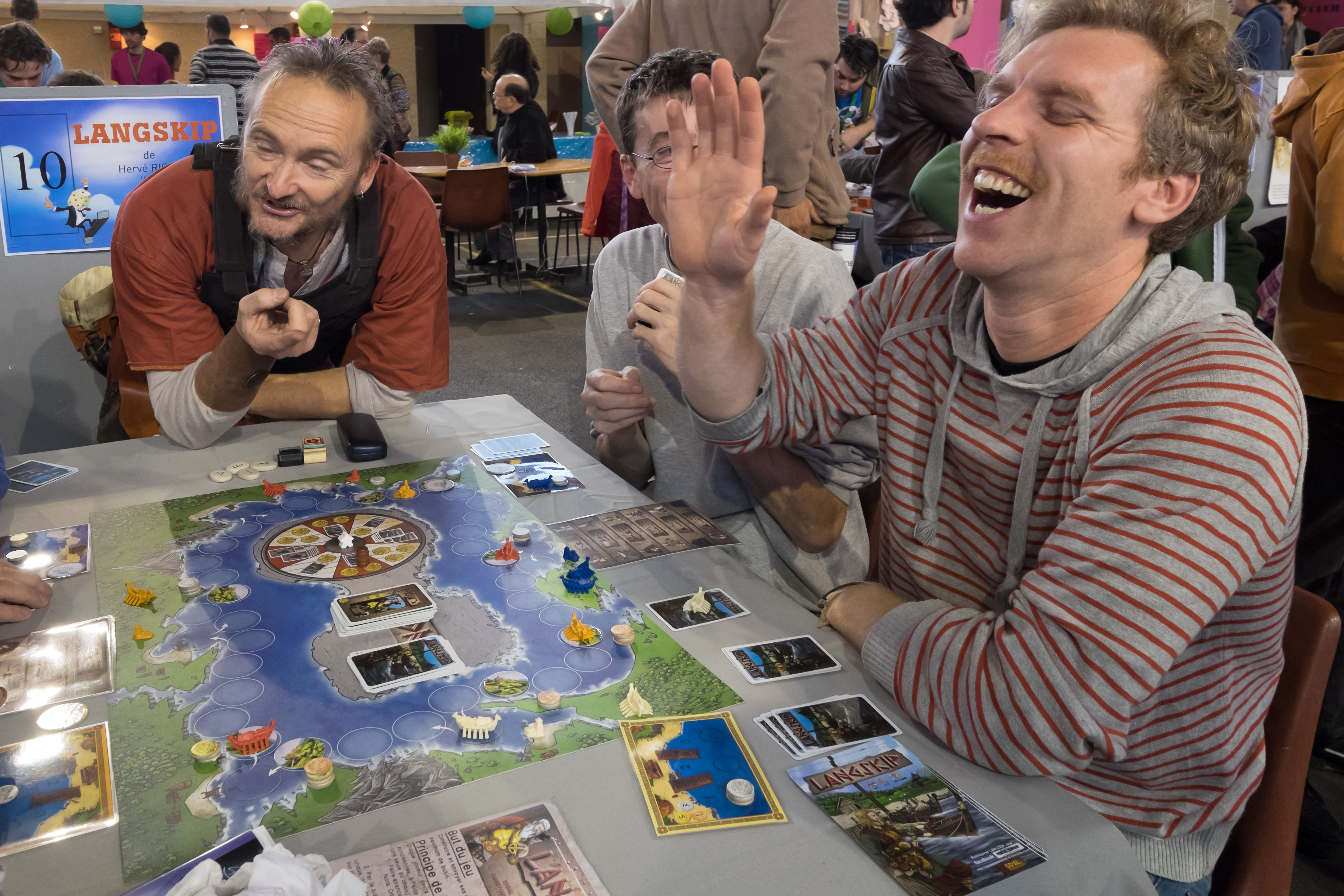 Le 23 novembre dernier, le festival Ludix récompensait 4 protos parmi 28 jeux présentés par leurs créateurs (je vous en parlais ici). Comme vous le savez, nous aimons parler des jeux à tous les stades de leur développement, nous allons donc revenir tranquillement sur tout ça, sur ces lauréats et leurs fiers auteurs, en commençant comme il se doit par RV Rigal, enseignant dans la vraie vie et papa du Ludix d’Or 2014 : « Langskip », un jeu de parcours inspiré du jeu de Toc basé sur un thème Viking.